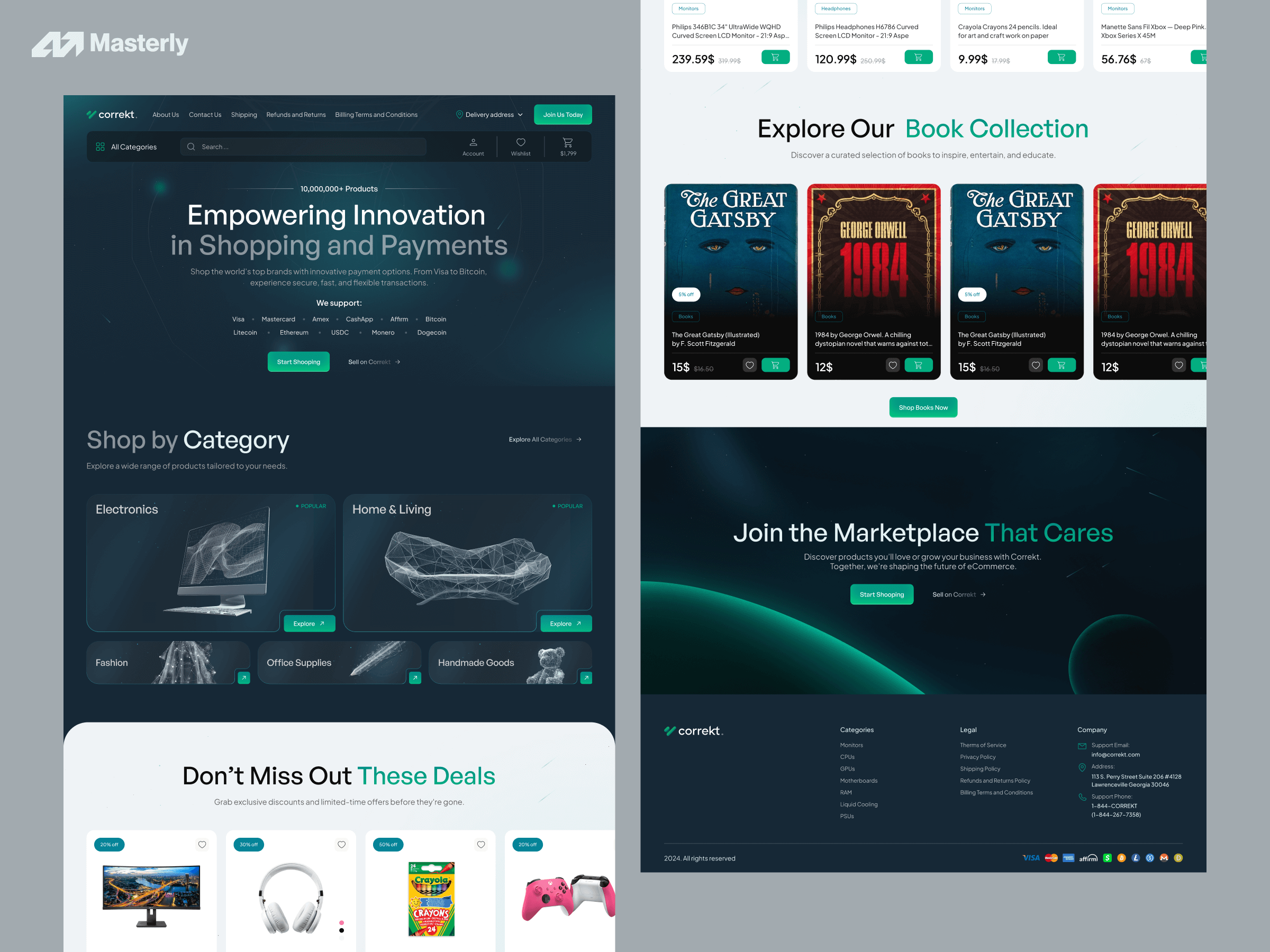 Correkt Commerce is an ethical eCommerce marketplace with over 10 million products. What sets them apart: shoppers can pay however they want — crypto (Bitcoin, Ethereum, Solana, XRP, USDC) or traditional methods (credit cards, financing).