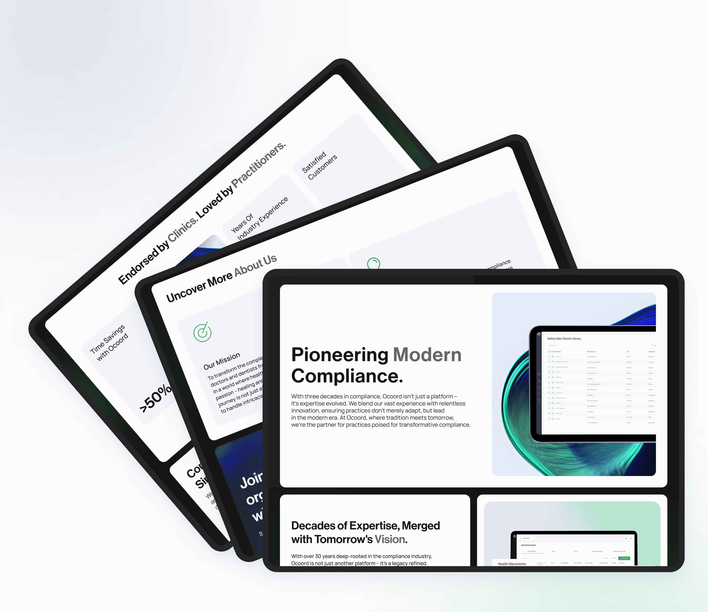 The marketing website effectively converts visitors into users, while the SaaS application guides over 10,000 practitioners through compliance tasks with clarity and confidence.
