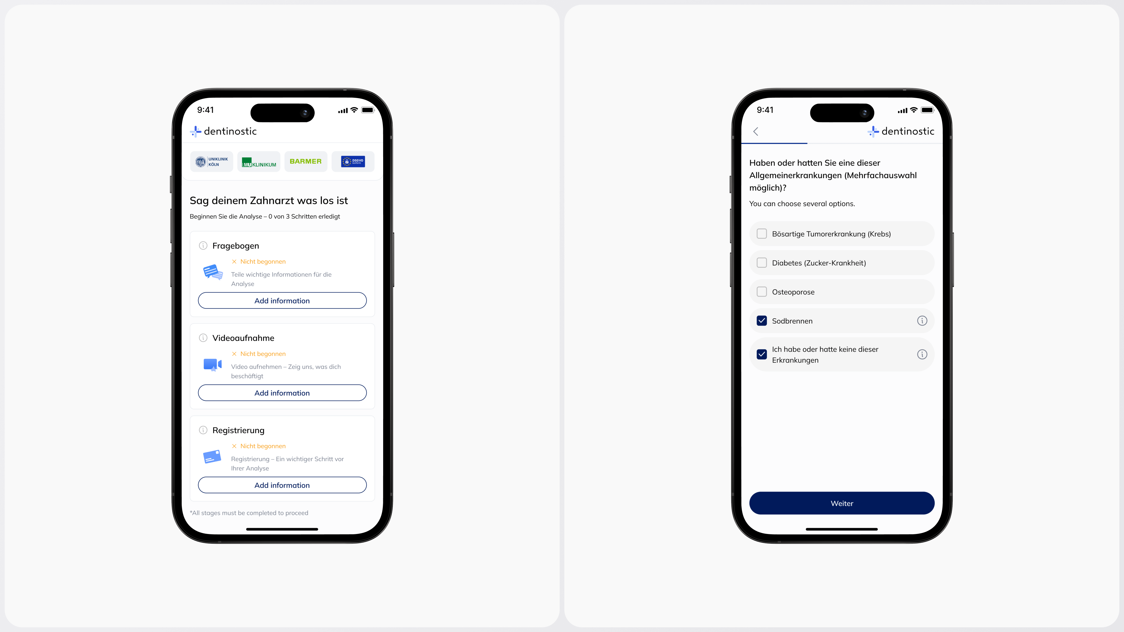 Dentinostic is a telemedicine platform revolutionizing dental care in Germany. Patients can get professional dental consultations remotely — upload a video of their symptoms, fill out a questionnaire, and receive a personalized diagnosis with treatment recommendations from licensed dentists, typically within 24 hours.